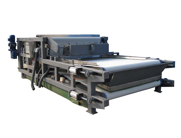 1.預(yù)處理階段,原漿液的固含量一般很低,為了降低處理成本,要采用重力沉降或其他手段來(lái)提高漿液濃度。帶式過(guò)濾機(jī)常用的預(yù)處理方法是:濃縮后的污泥與高分子絮凝劑混合,在絮凝劑的作用作用下,細(xì)顆粒團(tuán)聚并初步沉淀,這是污泥脫水的制備條件。